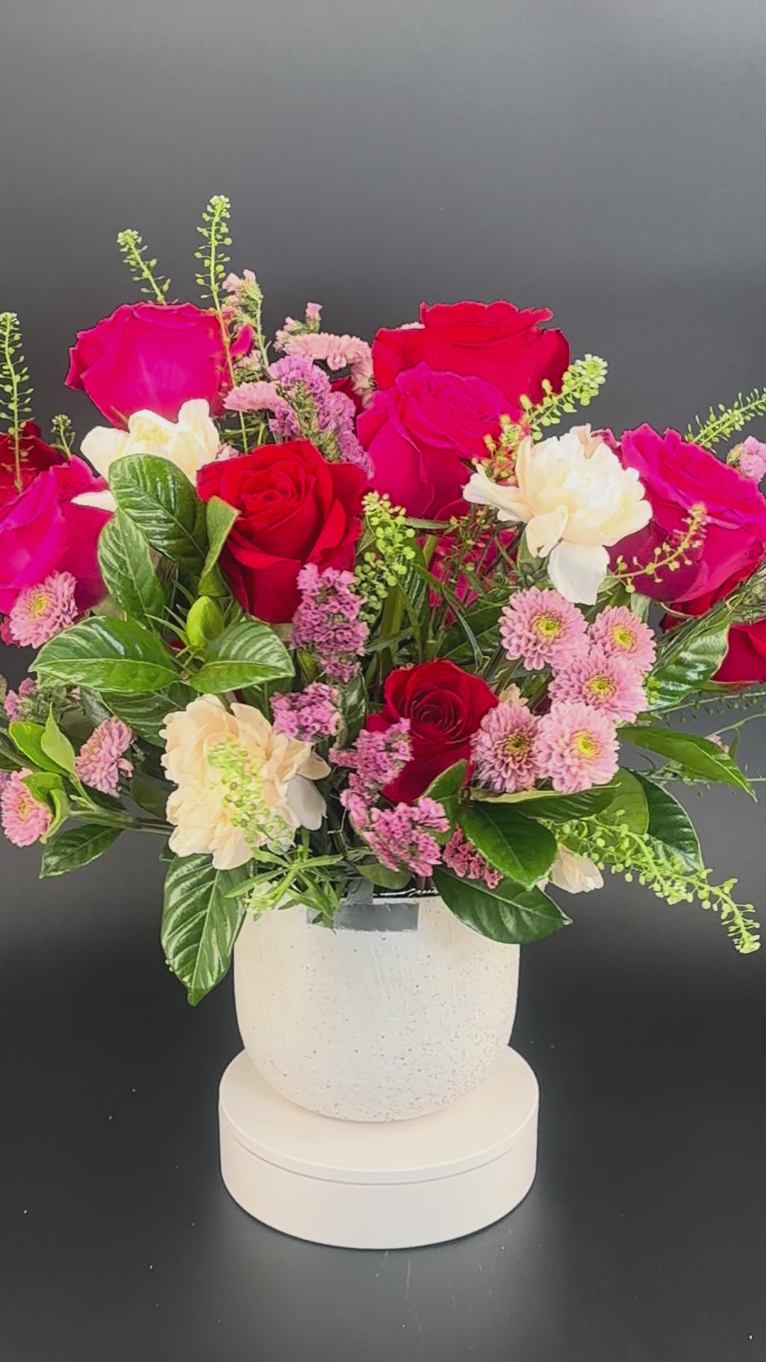 Make a statement with our most abundant, bold design, featuring premium blooms in deep red and pink. Valentine’s Day will be truly unforgettable with this lush expression of love.